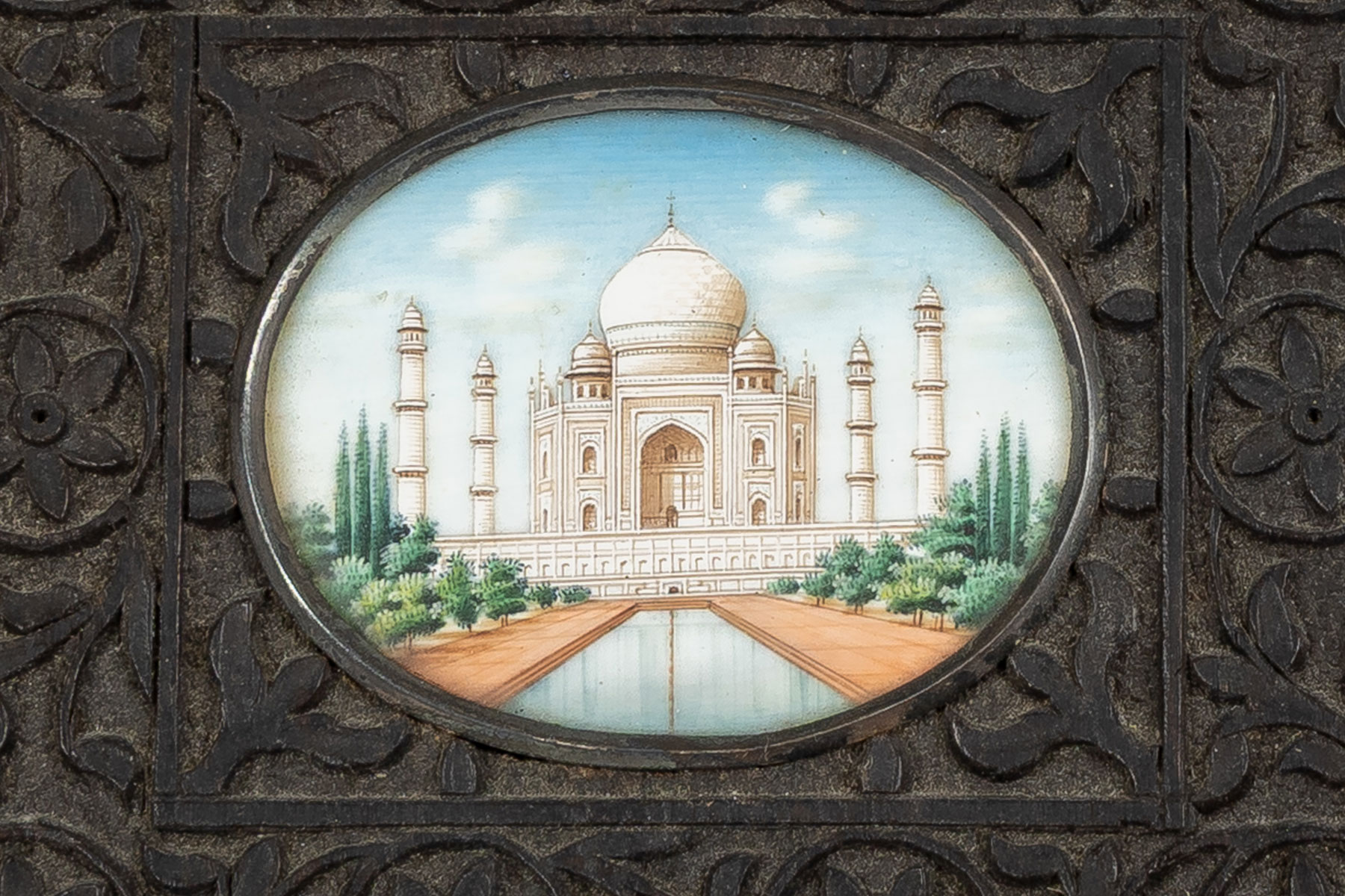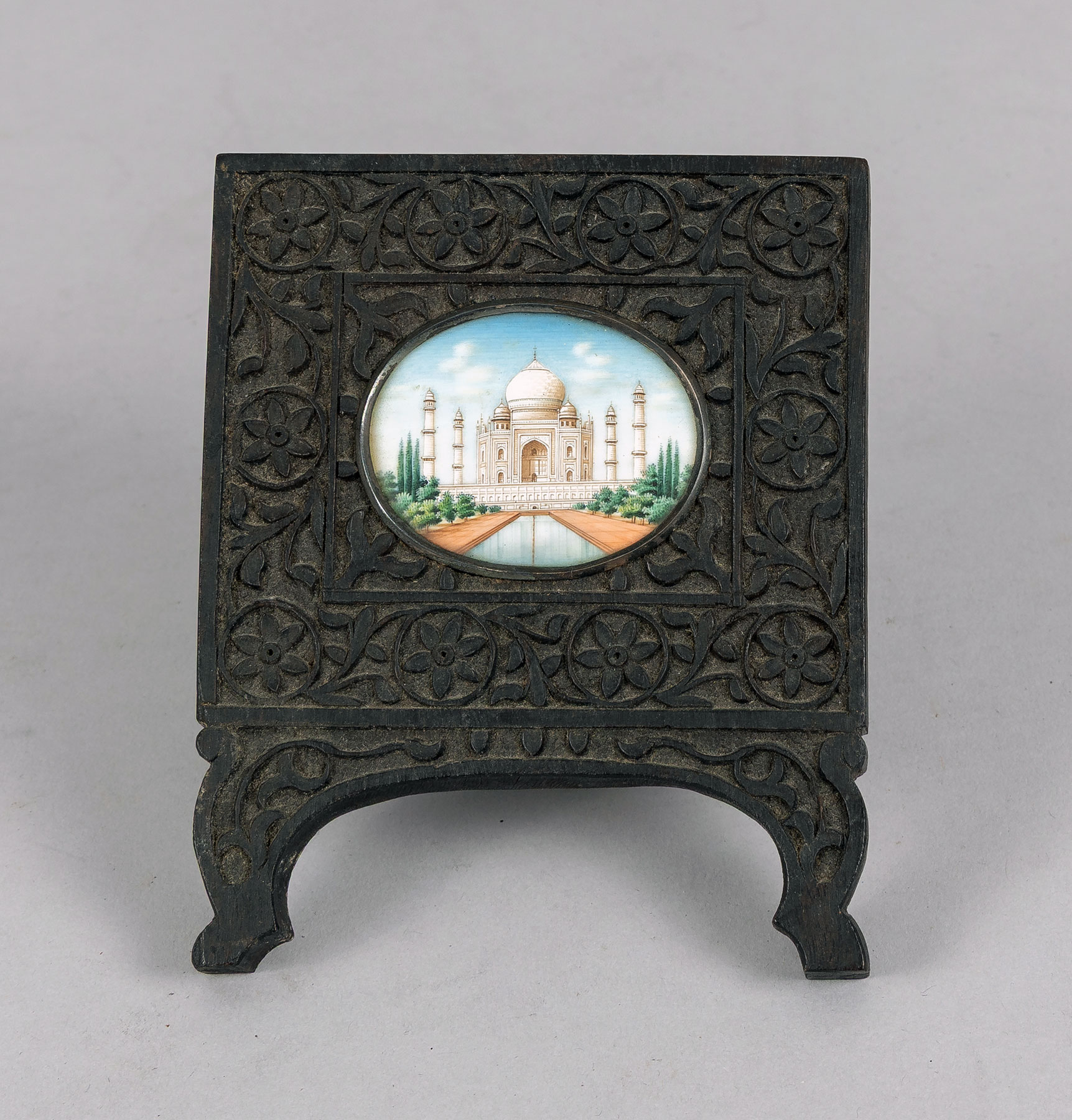 Anglo-Indian Miniature of The Taj Mahal in Ebony Frame